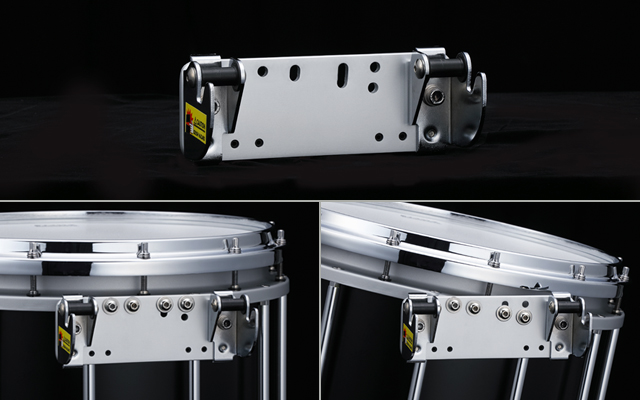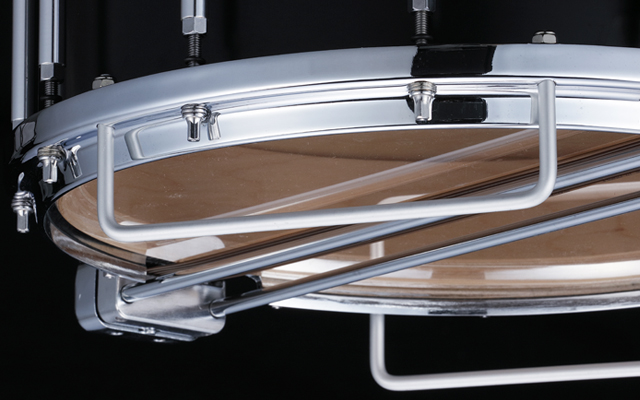 The Gut Frame of TAMA Fieldstar Marching Snare Drums can be removed and replaced in seconds. This quick detach design allows for changing the bottom head without disturbing the tension of the guts or position of the mutes. The two arms of the frame fully support the gut tension, removing the unwanted pressure from the shell for an unrestrained resonance.