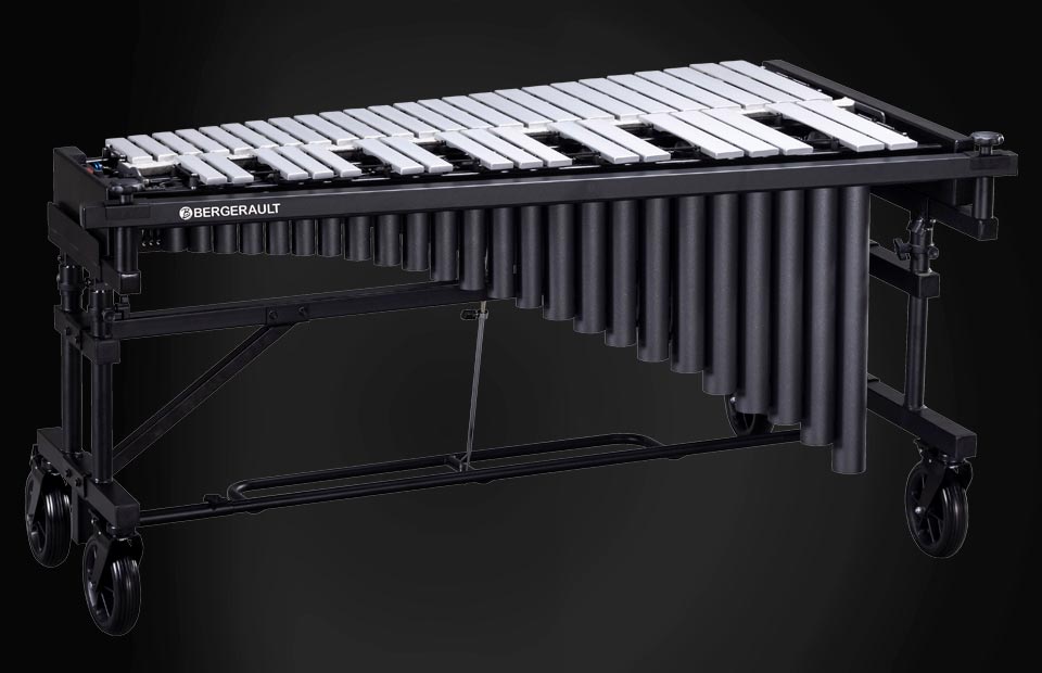 • Bergerault Performance Series Vibraphones feature the finest quality aluminum alloys crafted to produce rich sound, complex timbre, and outstanding retention of tone. Custom-sized aluminum bars deliver unparalleled pitch stability for both indoors and outdoors performances. Charcoal powder coated resonators contribute to an intense resonance that generates a rich, encompassing sound. Performance Series Vibraphones are also available with and without motors.