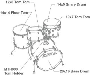 Tom Tom, Floor Tom & Snare Drum : 4ply Maple + 2 outer ply Lacebark Pine, 5mm Bass Drum : 6ply Maple + 2 outer ply Lacebark Pime, 7mm