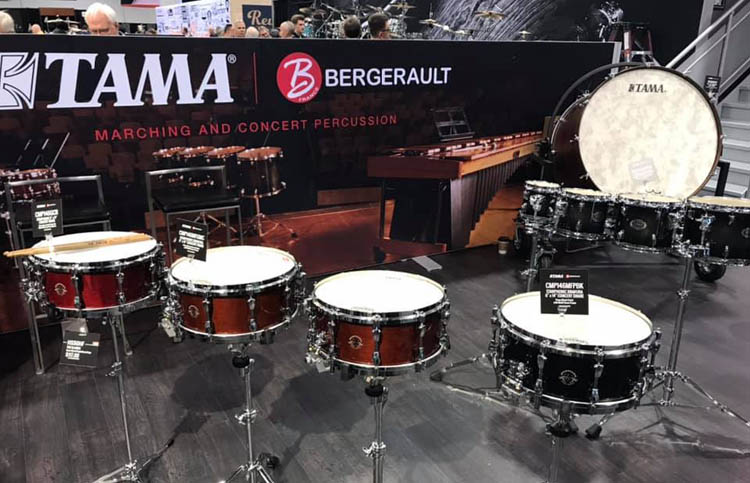 TAMA | BERGERAULT was represented in a very big way at this year’s winter NAMM. For the first time, the brand exhibited at an expansive space at the convention to showcase an assortment of Marimbas, Xylophones, Concert Toms, and a variety of other instruments. The Starphonic concert snare drums also made their official debut and even drew the interest of jazz legend and TAMA endorser, Peter Erskine.