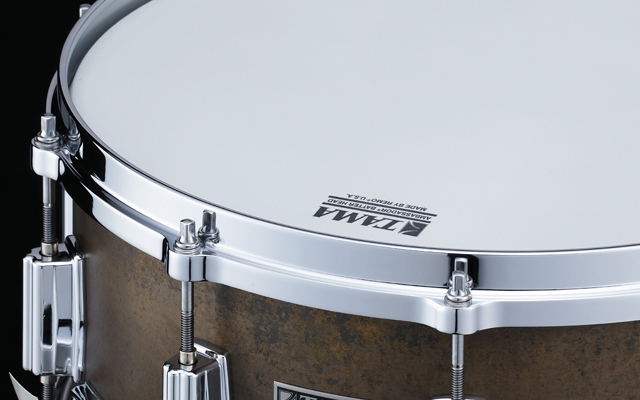 Utilizing a unique metal alloy predominantly comprised of copper & tin, the mixture is poured into a mold to form a 3mm thick shell. TAMA's Bell Brass delivers an explosive, yet extremely versatile sound, making it desirable for drummers of every genre. A significant, but little known fact of the original Mastercraft Bell Brass is the shell's exact 14" (355mm) diameter. As modern shells are usually 2mm smaller in diameter (to accommodate different drumhead manufacturers) the Bell Brass' extra size contributes to its magnificent and massive tone. Finished with a special look reminiscent of the original model, the Mastercraft "The Bell Brass" 50th Anniversary Reissue truly delivers as a faithful reproduction of a timeless snare drum.