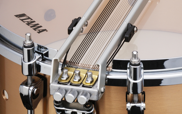 The Multi Snare Frame holds the wires so they come straight off the bearing edge. This promotes maximum responsiveness. It also includes small adjustment wheels for fine tuning the three sets of wires.