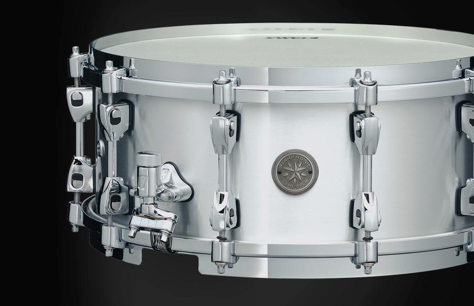 The 3mm aluminum shells combine the warmth and full-bodied tone aluminum is known for with the thunderous punch typically attributed to steel shells. The innovative Grooved Straight Hoops contribute to a focused yet unrestrained resonance. The unique combination of state-of-the-art features of the STARPHONIC Concert Aluminum snares expands adjustability and practical tuning range of the drums, giving players full control over articulation, dynamics and response. TAMA STARPHONIC Aluminum snare drum was built with universality in mind. It offers a wealth of features and unparalleled adjustability that will make any performer stand out at an audition, shine during a solo feature or blend seamlessly with an ensemble.