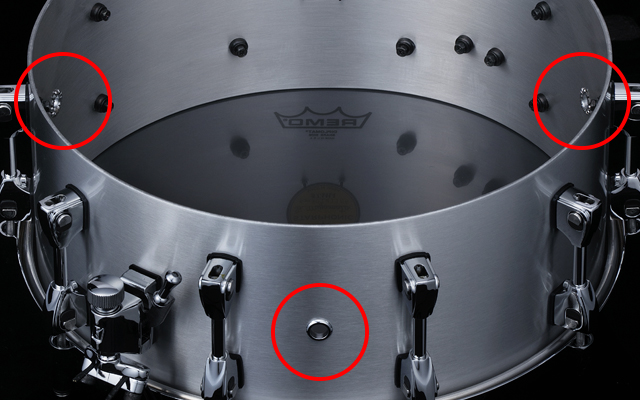 The long tension bolts protect the Multi Snare Frame when the drum is put down or not in use. It also prevents the assembly from being impeded in any way while the drum is being played.