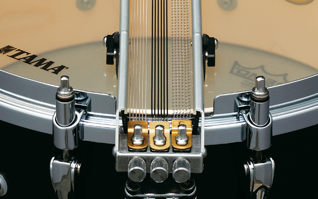 The Multi Snare Frame holds the wires so they come straight off the bearing edge. This promotes maximum responsiveness. It also includes small adjustment wheels for fine tuning the three sets of wires.