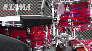 The new, upgraded bass drum cowbell attachment (CBH50) includes a clamp and L-rod. The position and angle of the cowbell are adjustable to your preference. Now included is a specially designed angled memory lock, which makes set-up quick and prevents the L-rod from moving while playing. As well, the bass drum clamp is now equipped with rubber hoop protectors in order to prevent the hoop from becoming damaged.