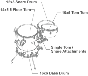 You can also add cymbals or various percussion instruments by attaching more clamps to the connecting pipes.