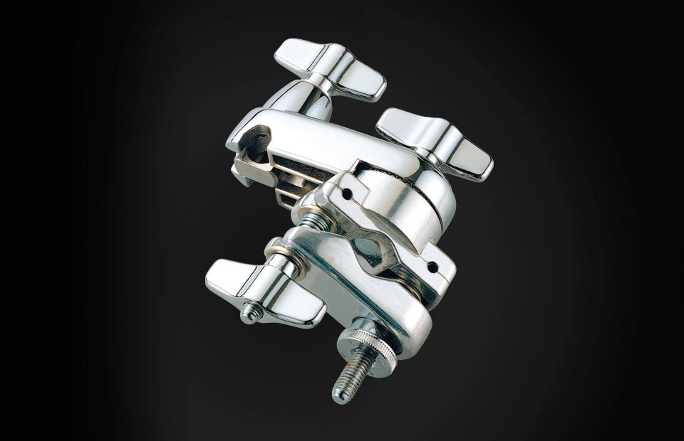 Clamps that can be attached to a boom arm or L-rod to set up splash cymbals and other equipment in limited space.