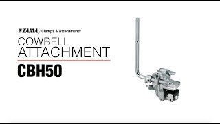Model No. CBH50 Details The new, upgraded bass drum cowbell attachment (CBH50) includes a clamp and L-rod. The position and angle of the cowbell are adjustable to your preference. Now included is a specially designed angled memory lock, which makes set-up quick and prevents the L-rod from moving while playing. As well, the bass drum clamp is now equipped with rubber hoop protectors in order to prevent the hoop from becoming damaged. -