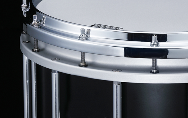 The newly redesigned high-strength magnesium alloy edge ring of the TAMA Fieldstar marching snare can withstand the highest of tensions of any modern batter head at a fraction of the weight, which contributes to a dramatic reduction of the weight of a drum.