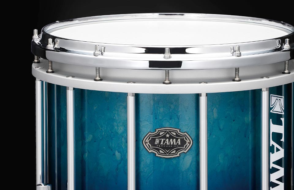The free-floating hardware chassis and unique detachable gut frame on TAMA’s Fieldstar Marching snare drums remove all stress from the shell allowing for an unrestrained vibration, resonance and projection.
