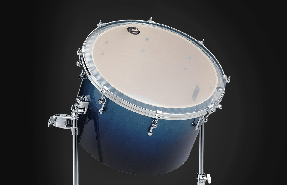 An early TAMA original, the Gong Bass Drum utilizes a 22" drumhead, mounted Tympani style to a 20" shell with no bottom head. This design produces thunderous low-end with rich sustain - characteristic of the large Taiko drums of ancient Japan. The Gong Bass features a 7mm thick Starclassic Maple shell and Quick-Lock Tom Brackets. It is available in all Starclassic Maple finishes (Exotic/ Lacquer / Duracover Wrap).