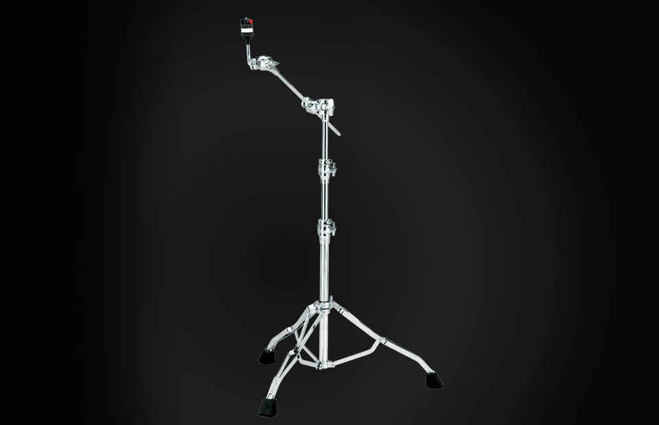 This new boom arm tilter allows for extremely easy and quick adjustment of the cymbal position. With only one wing nut, you can adjust the angle, length, and orientation of the boom arm in all directions. Eight metal discs secure the boom arm in place.