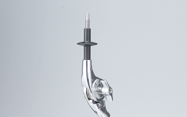 By simply gripping and pressing the two buttons on the both sides, users can attach and remove the Cymbal Mate with just one touch, making cymbals setup/breakdown a snap. Like our standard Cymbal Mate: fine adjustments to the cymbal's swinging motion can be made by rotating the unit.