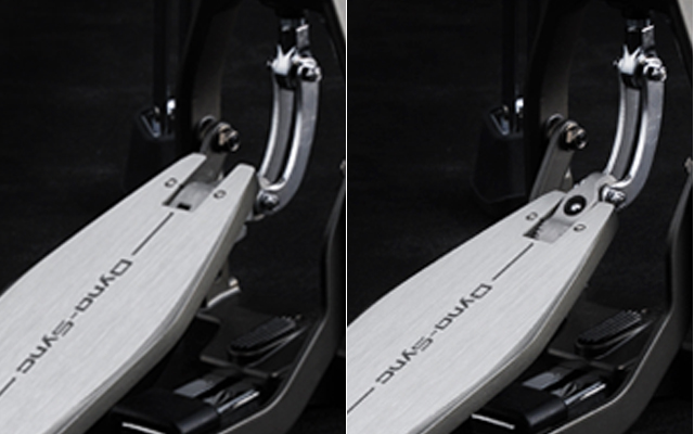 Drummers have come to recognize and appreciate independent bass drum footboard angle adjustment as an important function to help customize a personal feel. This inspired us to focus on the Dyna-Sync design and create a completely new and unique footboard angle adjustment. The Dyna-Sync footboard angle design integrates into the clam-shaped connection point between linkage and footboard and is fully adjustable to deliver a totally personalized pedal angle adjustment.