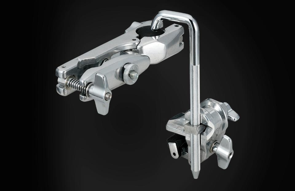 Model No. MHA823 Details The newly designed hi-hat attachment (MHA823) allows for better positioning of a hi-hat stand while using a double bass drum set-up. By connecting the MHA823 to the bass drum hoop, the hi-hat stand can be held upright without opening the hi-hat stand's legs. By utilizing TAMA Omni-Ball system, the clamp is now infinitely adjustable to any angle and enables even greater set-up flexibility. As well, rubber cushions are equipped to protect bass drum hoop from becoming damaged. The clamp is attachable to any hi-hat stand with a pipe diameter of 15.9 - 28.6mm by using the FastClamp Easy Set-Up System.