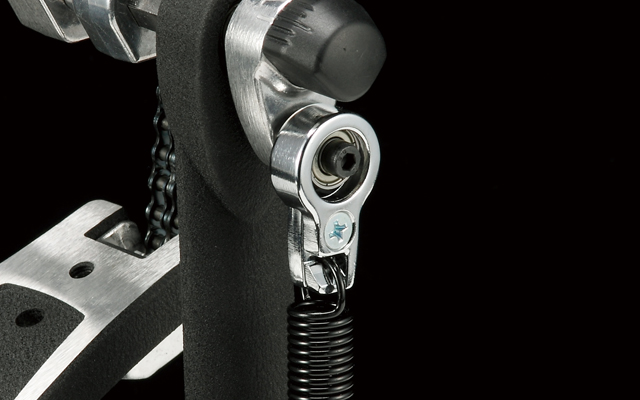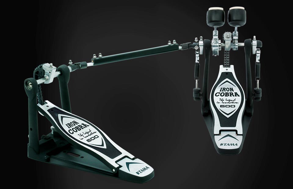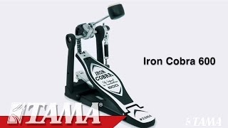 The Iron Cobra 600's most unique feature is a reversible cam called the "Duo Glide Cam." A simple adjustment allows fast changes between a true round "Rolling Glide" sprocket and an offset "Power Glide" sprocket. Drummers can choose the appropriate cam based on playing style, musical environment, and personal preference. In addition, the Iron Cobra 600 features a newly designed hinge for precise footboard action, and ball bearing equipped "Speedo-Ring" rocker cam.