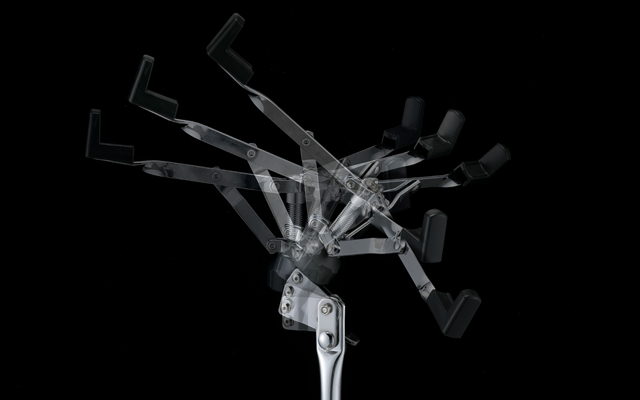 Asymmetrically spaced basket arms allow an 8 or 10 lug drum to be held without interference with its strainer, butt or lugs. Since the basket rotates independently from the stand, you can place the strainer in any position needed.