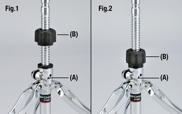 - Screw the Height lock (B) down to the top of the nylon bushing.