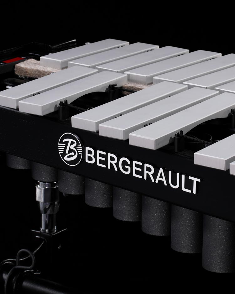 Bergerault Signature and Performance Series Vibraphones feature the finest quality aluminum alloys crafted to produce rich sound, complex timbre, and an exceedingly pleasant tone that is sure to leave a lasting impression. Offered in multiple tunings, with and without motors, these options ensure the instrument is tailored to the specific needs of the player, ensemble, or school.