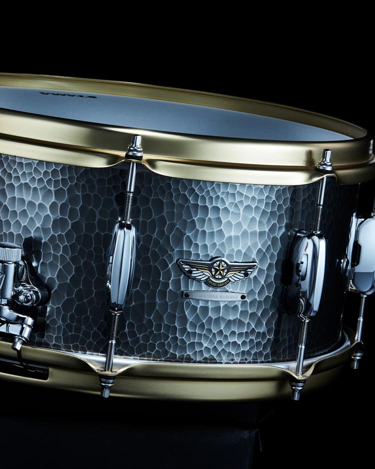 The first metal snare in the series, this 14x6.5" STAR Reserve Hand Hammered Copper snare drum has warm, rich resonance with bright and sharp attack. The unique hammering pattern gives the shell a barrell-like shape, producing a sound unlike any other metal snare.