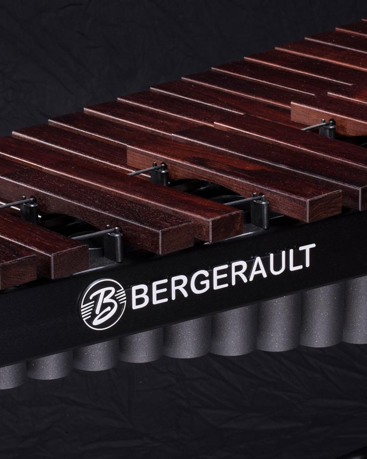 Bergerault Performance Series Marimbas are offered with bars made from Rosewood, Padouk, or Techlon. The bar's natural timbre when combined with the charcoal powder coated resonators, makes these instruments ring out with an impressive tone capable of filling large halls for rehearsal or recitals.