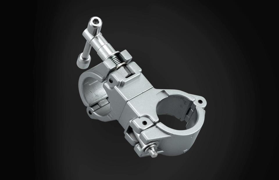 90 degree perpendicular pipe clamp that allows horizontal and vertical pipes to be set at an equal height.