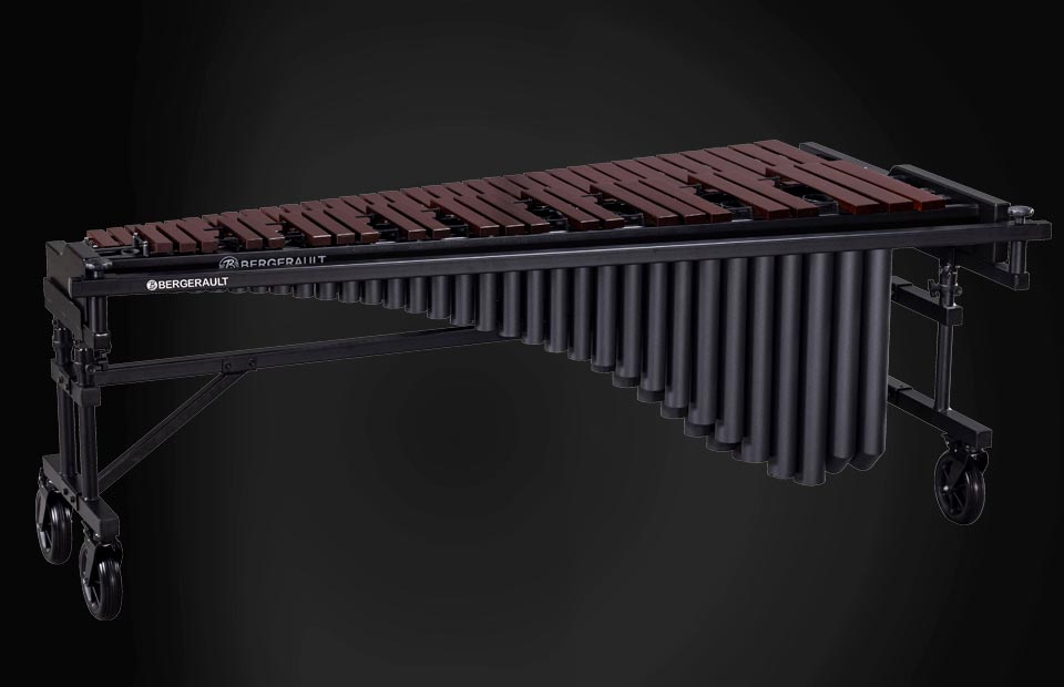 • Bergerault Performance Series Marimbas are offered with bars made from Honduran Rosewood or Techlon. Whichever material selected, the Performance Series Marimbas project flawlessly in both outdoor and indoor settings. The bar's natural timbre when combined with the Charcoal powder coated resonators, results is a superb, rich, and resounding tone, offering superior balance and complexity.