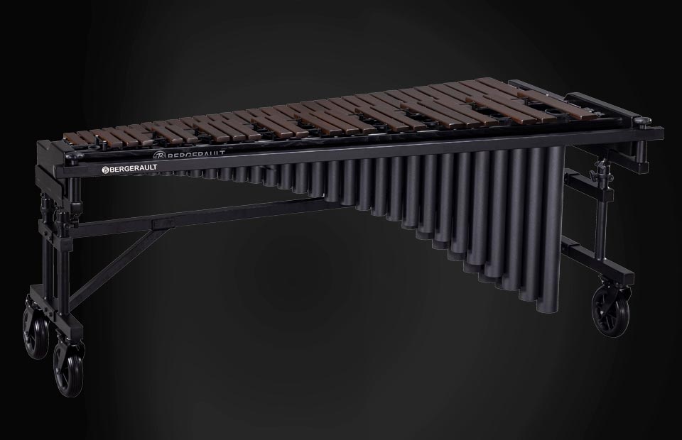 Bergerault Performance Series Marimbas are offered with bars made from Honduran Rosewood or Techlon. Whichever material selected, the Performance Series Marimbas project flawlessly in both outdoor and indoor settings. The bar's natural timbre when combined with the Charcoal powder coated resonators, results is a superb, rich, and resounding tone, offering superior balance and complexity.