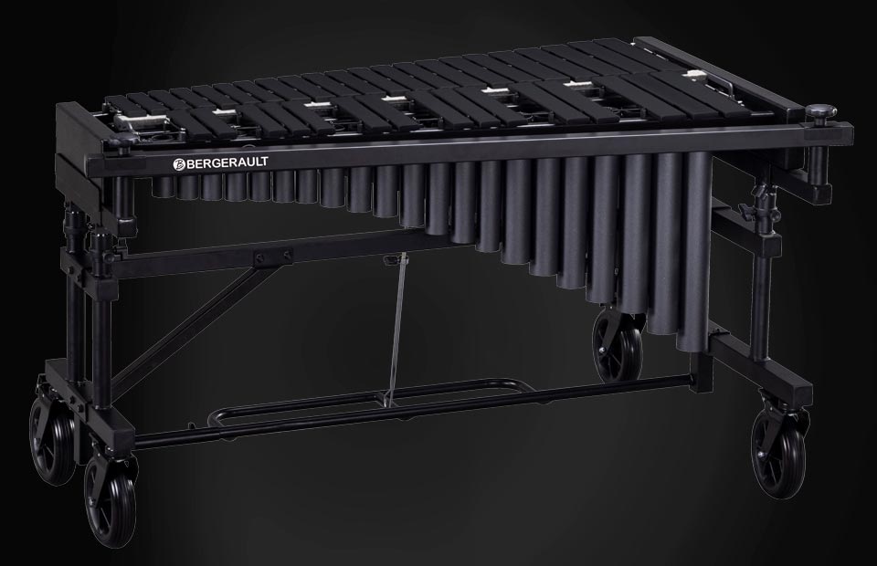 • Bergerault Performance Series Vibraphones feature the finest quality aluminum alloys crafted to produce rich sound, complex timbre, and outstanding retention of tone. Custom-sized aluminum bars deliver unparalleled pitch stability for both indoors and outdoors performances. Charcoal powder coated resonators contribute to an intense resonance that generates a rich, encompassing sound. Performance Series Vibraphones are also available with and without motors.