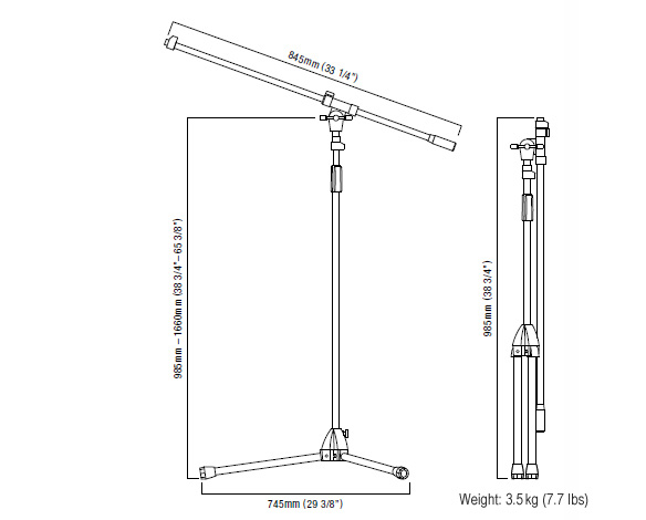 Boom arm : 845mm (33 1/4")