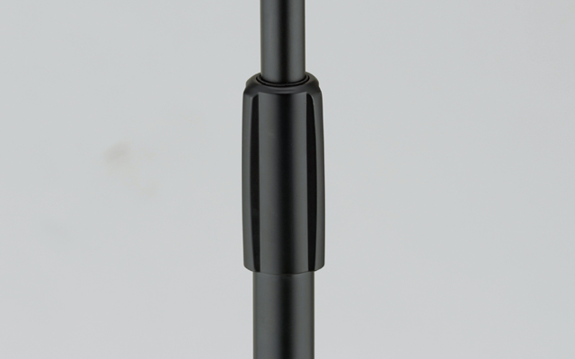 Anyone who has used existing boom stands is familiar with the following potential mishap: Performer attempts a slight adjustment of mic stand by rotating the boom arm in the stand around few degrees?but with an undesired result?the twisting force is just enough to loosen the plastic ring inside the adjustment collar. Having lost its grip on the upper telescoping shaft, the boom arm, and microphone, sink downward, possibly even falling to the ground. No more. Finally, TAMA has addressed this common problem by utilizing a specially designed ring with an anchor at the bottom, which sits in the mic pipe's slot. The ring does not rotate, so adjustment collar's grip cannot fail.