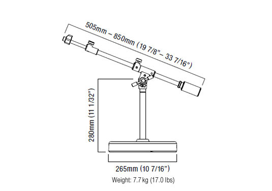 Boom arm: 505mm - 850mm (19 7/8"- 33 7/16")