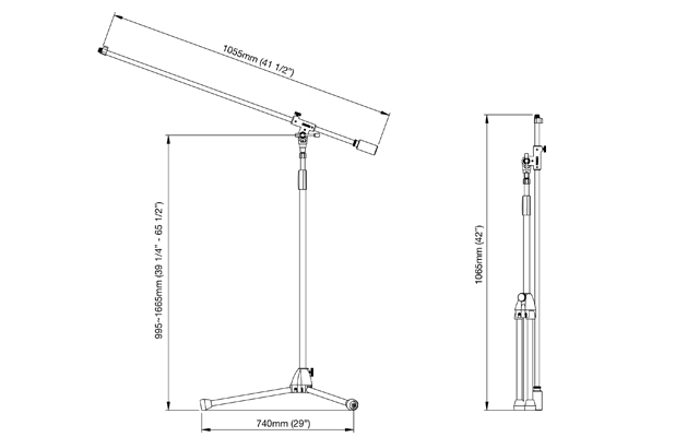 The most distinctive feature of the MS757BK is its long boom arm with a total length of 1,055 mm (≈ 42”), making it the ideal mic stand for drum overheads, acoustic piano, and vocals.
