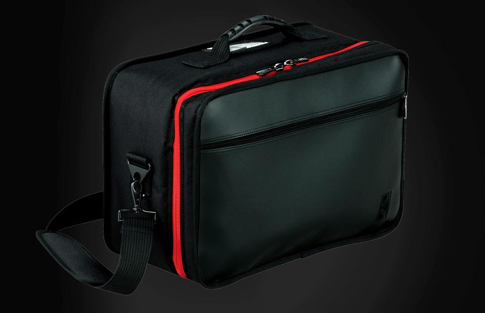 The POWERPAD® Series bag lineup includes the PBP200 double pedal bag and the PBP100 single pedal bag. The PBP200 can accommodate both single and double pedals. The PBP200 bag has a shoulder pad built into the strap for comfort. There is also a special pocket for your double pedal's connecting rod inside the bag.
