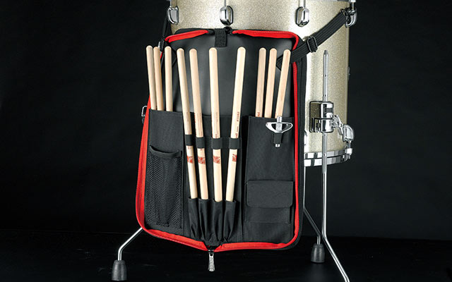 The POWERPAD® Series Stick Bag is designed to be easy and convenient, and comes standard with both a handle grip and shoulder strap. For mounting the bag onto your set, built-in hooks fit easily onto the floor tom tension rods. The inner pocket is designed to hold two pairs of sticks, which makes grabbing a fresh stick while playing easier than ever.