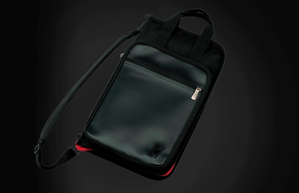 The TAMA POWERPAD® stick and mallet bag can store about 24 pairs of sticks, mallets, and accessories. The handle grip and padded shoulder strap make carrying a full bag of sticks much more comfortable. The POWERPAD® stick bag is easy to attach to your floor tom using built-in hooks which fit onto the tension rods. The innermost pocket is designed to hold two pairs of sticks, which makes grabbing a fresh stick while playing easier than ever. The large front pocket can store sheet music or other accessories.