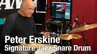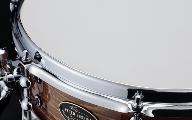The drum set is a jazz instrument — but you can play any style of music on it. The "Jazz Bass" was, in fact, played on more hit pop tunes than you can count; the "Jazz Snare" may enjoy equally legendary status one day. Designed to be affordable without any compromise in its playability or sonic footprint, the Peter Erskine Jazz Snare by TAMA is a unique 14"x4.5" drum, made of Spruce and Maple plies with a reinforcing ring on the batter side only. The drum whispers and shouts, with brilliant focus and snap. The sensitivity provided by the shallow depth is balanced by the 8-lug design which allows for a low fundamental body of sound. The drum follows your every command and will take you to new places, too. Every drummer should have a "Jazz Snare" as part of their collection; the beautiful wood/gloss finish assures compatibility with any drum set.