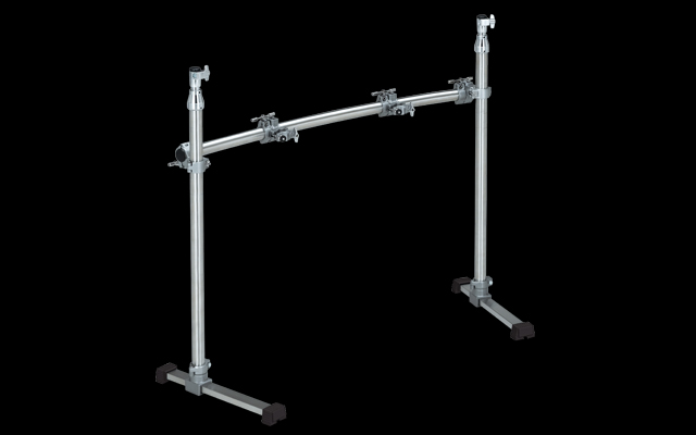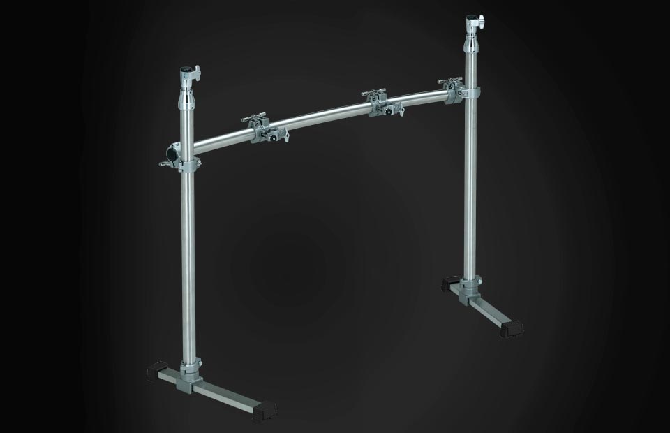 The PMD1100M is a basic set that includes two 850mm length vertical pipes, one 1100mm length horizontal pipe, and two clamps for tom holders. This unit is suitable for front/center use with a single bass drum kit, or on the floor tom side of a double bass drum kit. The vertical pipes have 19.1mm diameter die-cast joints at the top, on which allow you to mount cymbal holders.