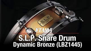 This S.L.P. Dynamic Bronze snare drum features an eye-catching aged patina finish. With a shallow 4.5" depth and 1.2mm thick shell, the bronze shell delivers a solid crack with die-cast hoops adding sharpness and attack. With all the sensitivity that is typical of a shallow shell, a variety of sounds can be produced. The Bronze shell is finished in a special aged patina finish that reveals unique character to the shell; no two shells are exactly the same.