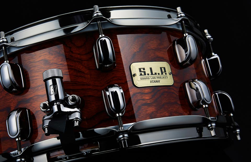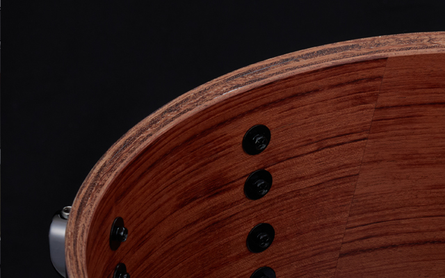 TAMA is known for its mastery of Bubinga, and this 12-ply 10mm Bubinga drum is a stunning example of that expertise. 2.3mm flanged hoops, and separate low-mass lugs enable the shell to resonate more naturally, giving the G Bubinga an extraordinarily punchy sound with a large helping of low-end.