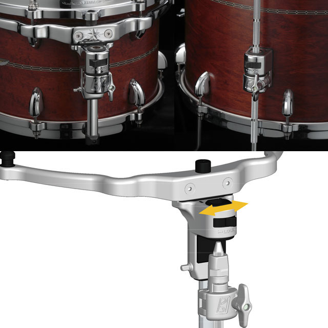 To maximize the natural resonance of drums, tom toms should be mounted with minimal stress and strain on the shells and hoops. STAR drums feature our brand new mounting concept to achieve this goal, called the Super Resonant Mounting System.