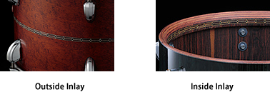 STAR drums come standard with a beautiful center wood inlay on the outside of the shells. We also offer the inlay on the inside of the Sound Focus Rings, or without any inlay at all.