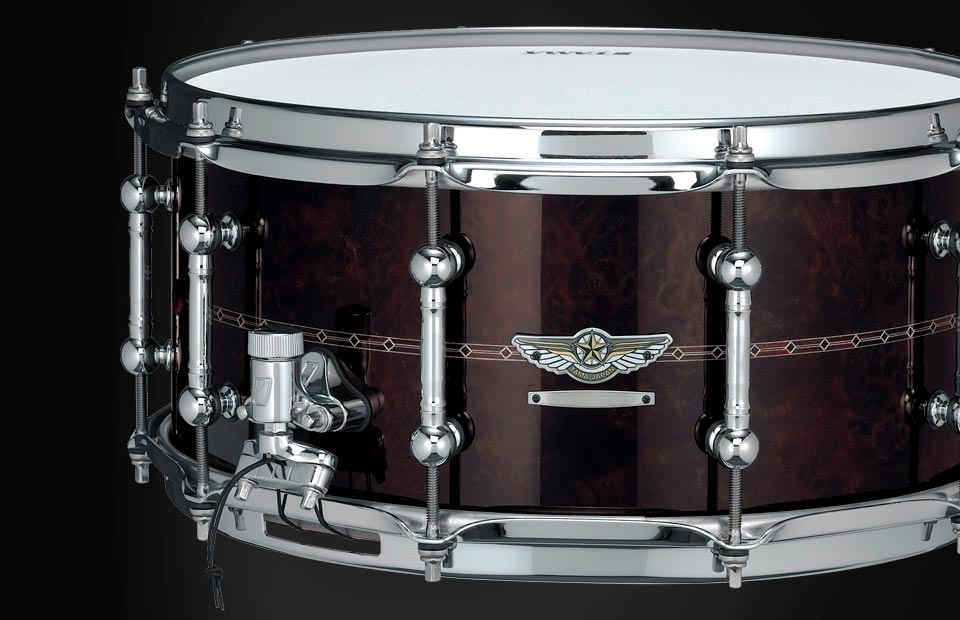 The 3rd model of the STAR Reserve snare series is developed to attain an extremely sharp cut and projection. The hybrid shell of Bubinga and Walnut with Maple Sound Focus Rings creates a solid, tight, and resonant tone. The beautiful Claro Walnut exterior ply lacquered in black see-through gloss adds to the elegance of the snare drum. It also features Sound Arc Hoop and our newly developed STAR Tube Lugs w/lug nuts for accurate tuning.