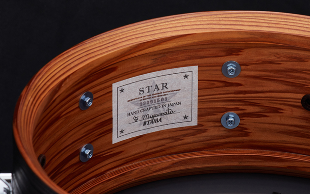 The 9th entry into the STAR Reserve series, this Solid Japanese Cedar snare drum uniquely features the traditional Japanese woodworking technique, Uzukuri, creating a three-dimensional appearance. Complemented by the beautiful oil finish, this snare drum produces a dynamically bright, powerful, yet focused sound. The 8mm thick shell is paired with the Customized Brass Mighty Hoop and Starclassic Bell Brass Wires, delivering powerful attack, rich and mellow tone, with crisp and dynamic sensitivity.