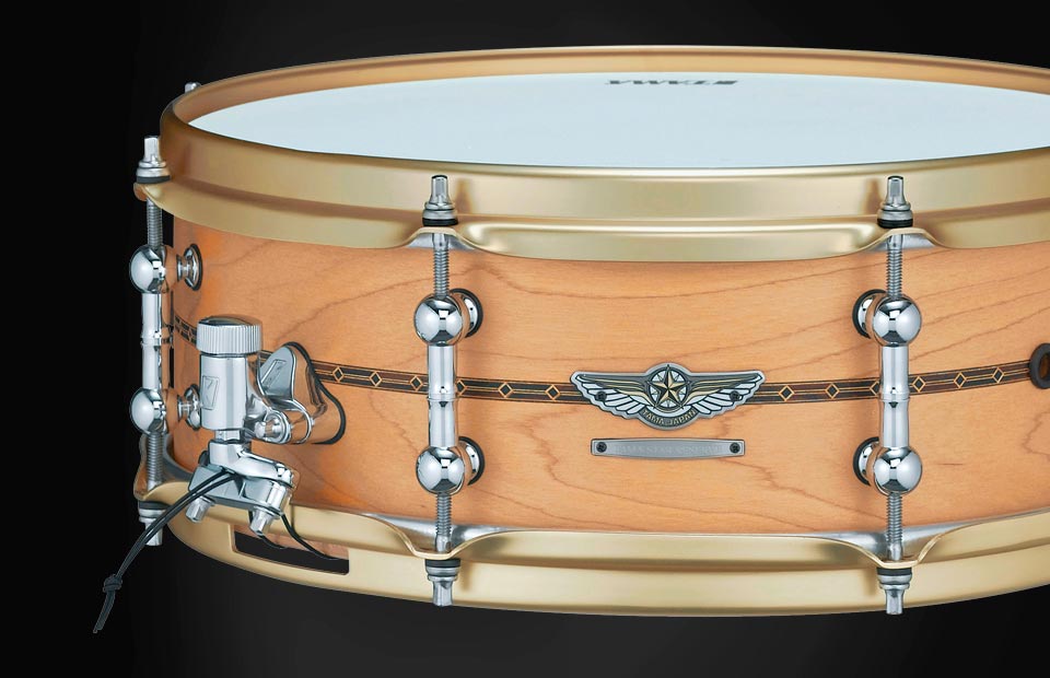 The 1st model of the STAR Reserve snare series was developed to attain unparalleled sensitivity and response for drummers. We combined a solid maple shell with a slightly sharper Starclassic bearing edge and 8-lug Brass Sound Arc hoops to create an ultra- sensitive, clear and bright tone. It also features our newly developed STAR Tube Lugs w/lug nuts for articulate tuning. Supersensitive Hi-Carbon Snare Wires for concert models complete the package, featuring a thin brass plate and softer hi-carbon coils that respond to even the softest touch on the edge of the batter head.