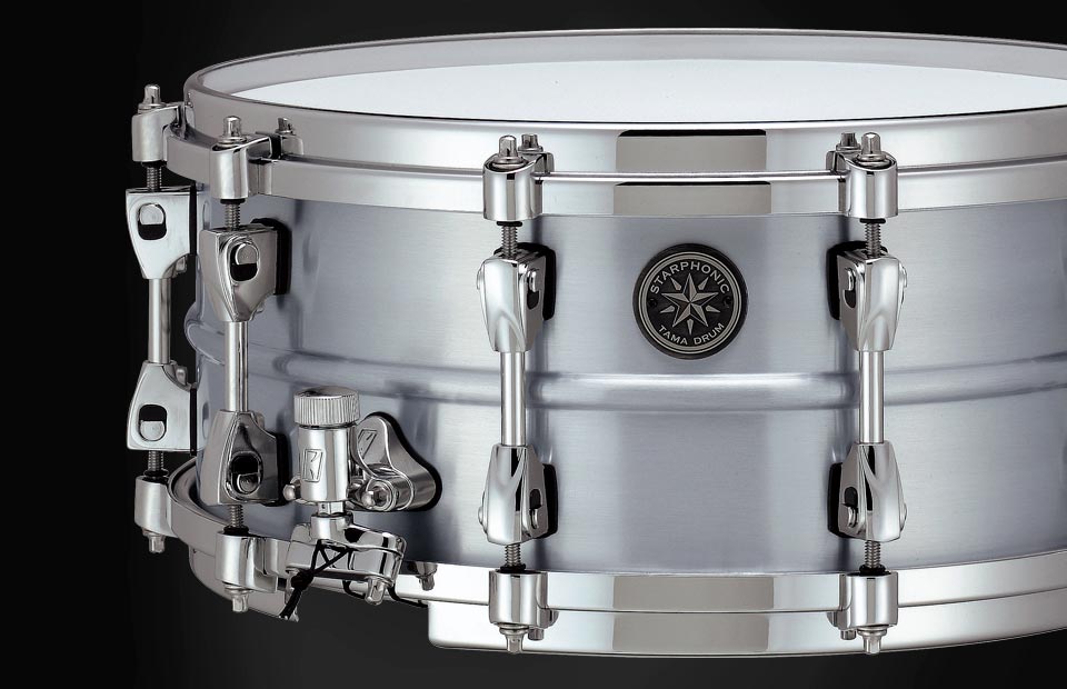 Featuring a 1.2mm thick seamless Aluminum shell, this drum creates a crisp, open sound with bright, complex overtones. Its aluminum shell maximizes the most positive attributes of STARPHONIC features, such as the Freedom Lug, the Grooved Hoop and Super Sensitive Hi-Carbon SNappy Snare. With such exhilarating soud quality, this drum will undoubtedly change your mind about the sound of Alminum.