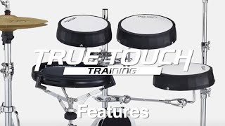 True Touch Training Kit is a revolutionary practice kit that not only offers the low volume required for practicing at home, but also allows drummers to perform critical technique refinement needed to improve their musical expression. The combination of quiet acoustic volume, realistic acoustic touch and sensitive dynamic expression results in a highly satisfying acoustic drum feeling, something that has not been possible with conventional practice kits until now.