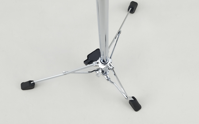 Specially designed tripod legs provide a stable base while saving space. By shortening one of the leg's length, the base is more compact and allows the kit to position closer to a wall or room corner. The pedal bumper pad (included) prevents metallic noise potentially caused by pedal-to-pad contact.