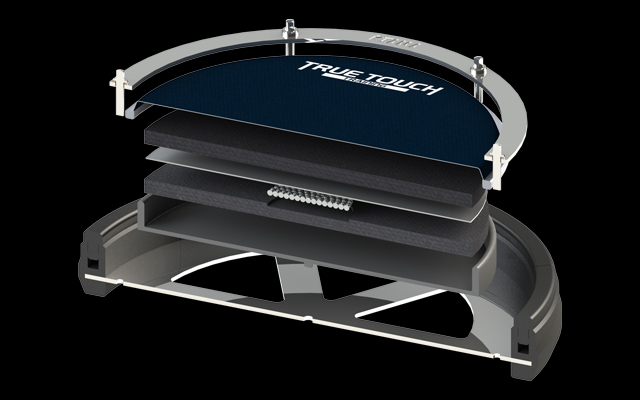 TAMA's True Touch AAD Snare Pad provides the utmost dynamic expression, articulation and accuracy in a practice pad. The pad incorporates a multi-layered design using strong, heavy base materials and multiple layered foam pad materials. A sound source hidden inside the pad produces an immediate response snare buzz sound that is dynamic. This critical "sound feedback" gives the drummer critical information necessary to refine their technique. The two-ply mesh top layer material produces realistic stick response and can be "tuned" from low-mid-high to "dial-in" player feel. The top hoop is raised, similar to an actual drum hoop, to allow drummers to accent rim shots and play side-stick techniques. The overall pad construction and material combination produces a springy-yet-firm stick rebound quality that fully immerses drum stick technique with responsive, detailed rhythmic information.